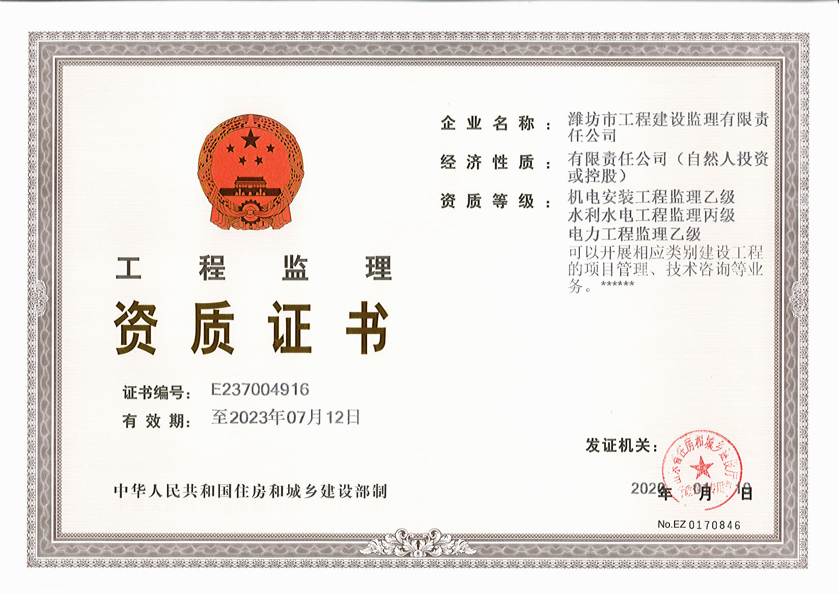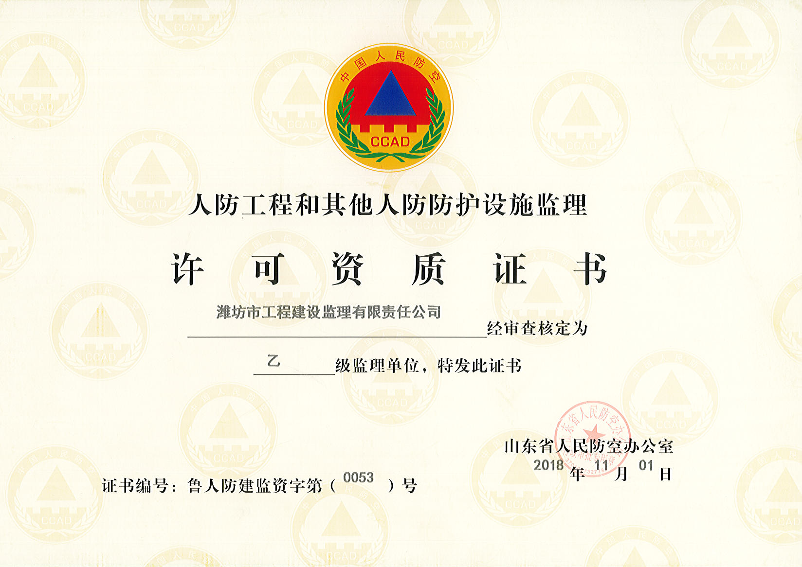 企業(yè)資質(zhì) 當(dāng)前位置:首頁 · 關(guān)于我們 · 企業(yè)資質(zhì) 營業(yè)執(zhí)照(三合一) 工程監(jiān)理資質(zhì)證書 工程監(jiān)理資質(zhì)證書 人防監(jiān)理乙級資質(zhì) 工程招標(biāo)代理機構(gòu)資質(zhì)證書 工程咨詢資質(zhì)證書 職業(yè)健康安全管理體系認(rèn)證證書 環(huán)境管理體系認(rèn)證證書 質(zhì)量管理體系認(rèn)證證書